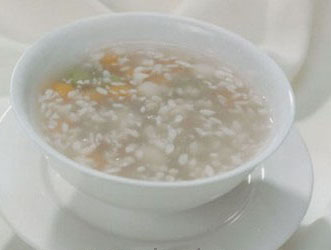 做湯倒是講究些。白粒丸和面條、米粉一樣,好不好吃憑的是那碗湯。靖港白粒丸的湯是用豬筒子骨熬出的原湯,還要放姜末、蔥花、芫荽作配料。把稍稍煮熱的白粒丸撈上來(lái)下到湯里后,還要添加小麻油、辣椒醬;還要擺一小碟干蘿卜或窄菜絲,以佐其味。