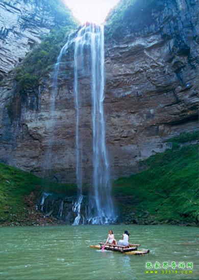 ▲這里有從天而降的流紗瀑布,宛如一皮皮輕紗飄飄揚(yáng)揚(yáng)兩百多米,創(chuàng)中國之最。