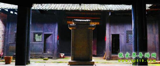 彭氏宗祠位于司城中心,在土司“寢宮”的后面,內(nèi)供歷代土司的牌位,有精美的木雕像,各具神態(tài),槢槢如生,還收藏了歷代土司制定的三綱五常法譜。為明代完歷十九年(公元1591)第24代土司彭元錦任宣慰使時所建。從祠堂大門直到正街有一條200多米長的官道,要經(jīng)過四個平臺和五段石階梯三十余個石級,逐步高升顯出一種威嚴(yán)的氣派。祠堂門口有一對石鼓,估計每只至少重五千斤以上,民間傳說是土家族古代英雄哈力噶巴從離此百多里的五官坪一只手提一只提到司城來的。祠堂前還有三棵古老的桂花樹,據(jù)說是土司時代栽植的,現(xiàn)在這些桂花樹依然蔥蘢,每當(dāng)八月桂花盛開時節(jié),司城處處桂花漂香。