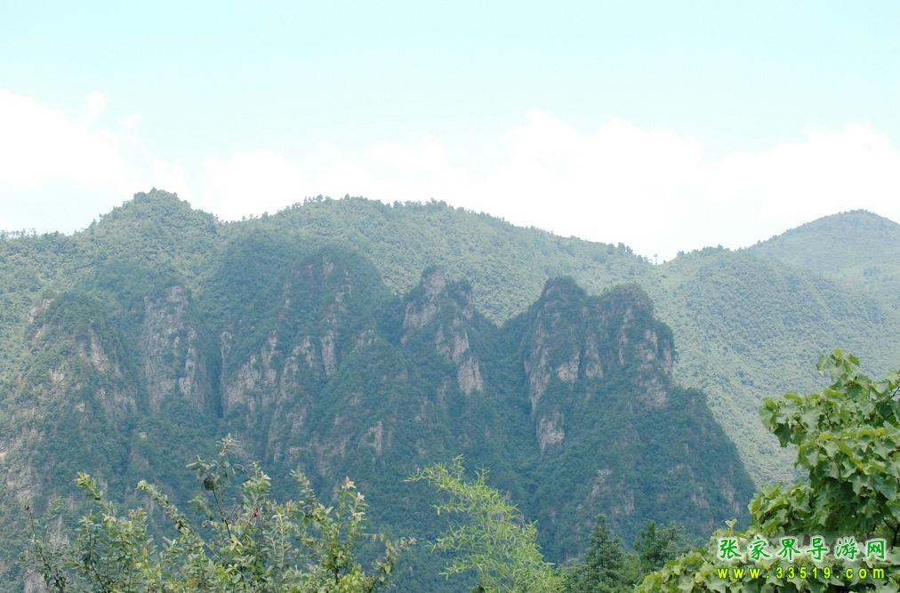 再向前,兩岸的山峰,更像一座座人型,或者某一物體,這一帶有“金猴望月”,“群仙赴會”,“罐尖山”,“神仙洞”。還有,高聳入云的石峰,上面頂著一塊平面巨石的“棋盤巖”;叢林中突兀而出的“三尖巖”;萬丈懸崖上長出兩個大孔的“牛鼻峰”;懸崖上兩道瀑布從天而降的“二洞泉”;還有群峰護(hù)衛(wèi)的“人形山峰”;座北朝南,頭頂披肩,雙手合十的“觀音山”。老人會告訴你:“這條溪,十幾里路,幾十個景點,上百個傳說”