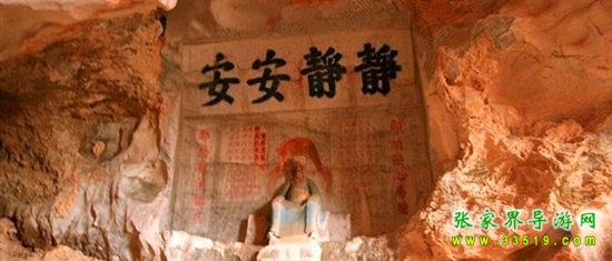 玉皇洞石窟位于張家界城西約7公里的麻空山南壁,為清代本地鄉(xiāng)紳李京開(kāi)獨(dú)資捐修。李京開(kāi)又叫李五瑞,別名九洞樂(lè),號(hào)識(shí)破生。他生于乾隆七年(公元1742年),道光乙酉年(1825年)去世,享年83歲。李先生家道殷實(shí),富甲一方。少時(shí)勤奮讀書(shū),頗有才華,數(shù)十年奔波仕途,但屢試不第,官場(chǎng)無(wú)望,于是看破紅塵,另尋安慰,請(qǐng)工匠,耗巨資,憑借麻空山天然溶洞,按上、中、下方位布局,巧妙構(gòu)思,開(kāi)鑿成“天堂”、“人間”、“地府”三層共八個(gè)洞。另外,在離此約3公里的峰泉洞另鑿一洞,故有“九洞樂(lè)”別名。玉皇洞石窟上層為玉皇洞,人間層有玉金洞、毫筆洞、墨池洞、虎龍洞、雄獅洞、孔圣洞,地府為因果洞,八洞組成一個(gè)完整的混沌世界。居八洞之首的玉皇洞,雕有玉皇大帝神像,意為“天堂”至尊,統(tǒng)帥中層的“人間”和下層的“地府”,故八洞統(tǒng)稱玉皇洞。此洞于1799年動(dòng)工,到1807年完成,歷時(shí)八年。洞內(nèi)雕鑿了一些歷史人物的神像以及大量詩(shī)詞匾對(duì),不僅石雕精湛獨(dú)特,雕像神韻生動(dòng),書(shū)法遒勁大氣,而且在石窟藝術(shù)的主題構(gòu)思上,抒發(fā)了主持捐修者李京開(kāi)懷才不遇、憤世疾俗、向往太平盛世的情感,鞭達(dá)了腐朽的科舉制度,對(duì)于研究清代社會(huì)和科舉制度,以及當(dāng)時(shí)一般讀書(shū)人的思想情感,都具有一定的史料價(jià)值。整座洞窟東西長(zhǎng)300余米,現(xiàn)存石像19尊,石刻50多處,是湖南省唯一保存完好的石窟藝術(shù)群,1959年玉皇洞被列入湖南省重點(diǎn)文物保護(hù)單位。