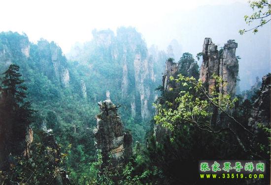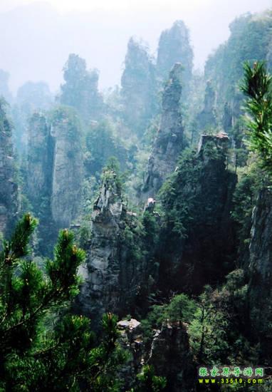 數(shù)以千計的奇峰怪石拔地而起森列谷中。在建筑師看來,石峰如塔、如柱、如屏、如樓、如堡、如墻,鱗次節(jié)比、錯落有致,展現(xiàn)了一幅宏偉的建筑藍(lán)圖;在藝術(shù)家看來,石峰似人、似佛、似鳥、似獸、似花、似樹,似瓊樓玉宇,生動逼真唯妙唯肖,似一幅彩色的畫卷;在軍事家看來,石峰是將、是兵,是鼓、是旗、是車、是馬,威武雄壯嚴(yán)陣待發(fā),象一支天降的軍隊。
