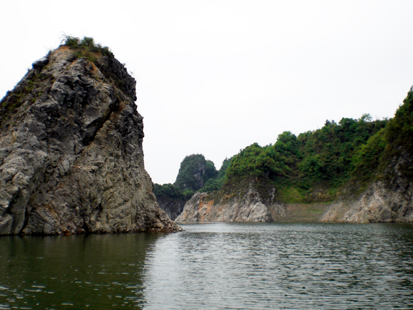 湖南省慈利縣趙家埡水庫始建于1972年,是一座以抽水蓄能發(fā)電為主,兼具蓄洪防洪、抗旱灌溉、營林旅游、水產(chǎn)養(yǎng)殖等多功能于一體的中型水利水電骨干工程,水庫本身集雨面積33.5km2,外引集雨面積24Km2。水庫樞紐大壩為粘土斜墻堆石壩,壩底高程為500m,壩高46m,由于水庫屬封堵天然溶洞而建,大壩潛于水下,趙家埡水庫因此被稱為我國第一座“無壩”水庫。