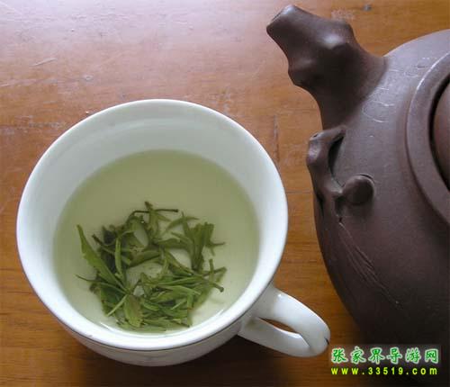 武陵源風(fēng)景區(qū)盛產(chǎn)香茶,著名的有“青巖茗翠”、“龍蝦花茶”、“黃石寨云霧茶”、“天崇毛尖”與“索溪毛尖”等。通過1982年評(píng)比,“青巖茗翠”獲部級(jí)金杯獎(jiǎng),同年又獲全國首屆食品博覽會(huì)銀獎(jiǎng)。“龍蝦花茶”也已列入全國名茶。人們經(jīng)過品嘗、評(píng)比,并經(jīng)茶葉專家鑒定,一致認(rèn)為“青巖茗翠”、“龍蝦花茶”等具有外形美觀,內(nèi)質(zhì)優(yōu)良等特點(diǎn)。這種茶葉,從外形來看,條索緊結(jié),圓渾彎曲,苗鋒顯露,銀毫滿披,色澤翠綠,從內(nèi)質(zhì)來看,清香馥郁,味醇回甘,湯色綠明,葉底均勻,飲后爽神,具有熟板栗蘭花之奇香,飲后回味無窮。據(jù)考證,“青巖茗翠”屬高山云霧茶一類。自古道:“高山出好水,云霧育佳茶”。黃石寨枇杷界海拔1000多米,氣候溫和,云霧繚繞,溫度適宜,因而,茶葉嫩度高,品質(zhì)好。這種獨(dú)特的環(huán)境為茶葉中的氨基酸,咖啡堿等有效成分的形成和增長(zhǎng),提供了優(yōu)越的生長(zhǎng)條件,而對(duì)質(zhì)地粗老的纖維素的形成,則又起到了抑制作用。還有,這些山峰上日照短,直射光少,漫射光多,晝夜溫差大,土質(zhì)的有機(jī)質(zhì)豐富,因而結(jié)構(gòu)疏松,排水又好。一切這些因素,都為茶葉的平穩(wěn)生長(zhǎng)創(chuàng)造了良好的條件。所以“青巖茗翠”茶,就博得了各地名家的一致好評(píng)。湖南省茶葉學(xué)會(huì)秘書長(zhǎng)、湖南農(nóng)學(xué)院副教授朱先明品了這種茶以后,賦詩贊美:
